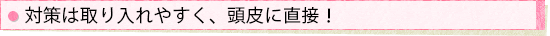 - 特に分け目が気になるので分け目を変えたりしています。また、髪を縛るのは頭皮にストレスがかかりそうな気がするのでなるべく縛らず、また、髪を短くしたりして切れ毛などを防いでいます。[30代 女性]