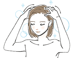 2度目は頭皮をマッサージしながら洗う。指の腹で円を書くように洗うのがコツ! ツメをたてて地肌を傷つけないようにね。