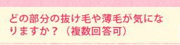 - 年齢的な抜け毛以外にもストレスで円形脱毛症になりやすいタイプなので普段から血行促進の育毛剤とかを買って置いています。[40代 女性]