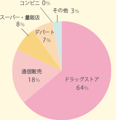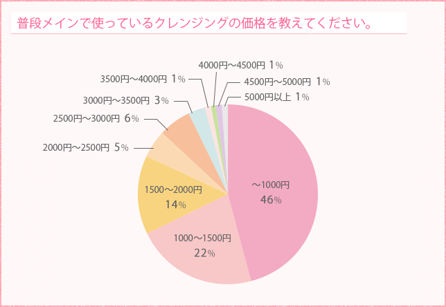 そのクレンジング事情を聞いてみたところ、約半数が1000円未満のものを使用しているようです。次いで「1000〜1500円(22%)」「1500〜2000円(14%)」と、8割を超える人が2000円以内のものを購入していることがわかりました。また、半数以上の人が2〜3ヶ月の頻度で1本を消費しているとのこと!そして、普段の購入場所には6割を越える人がドラッグストアを利用。ドラッグストアに次いで多かったのが、「通信販売(18%)」。ますます便利になってきたWEBを利用して購入している方も多いようです。