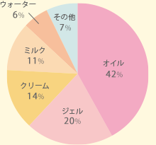 クレンジングに求めることの1番は「しっかりメイクも落とせること(61%)」でした。次いで「つっぱらないこと(52%)」「価格(44%)」「刺激がないこと(43%)」が挙がりました。やはりクレンジング本来の目的として、メイクが落ちるかどうかは外せないポイントですが、刺激やツッパリを感じることなくメイクや汚れを落としたいものですよね。また、洗いあがりの肌の状態に、さっぱり派としっとり派に分かれる結果となりました。