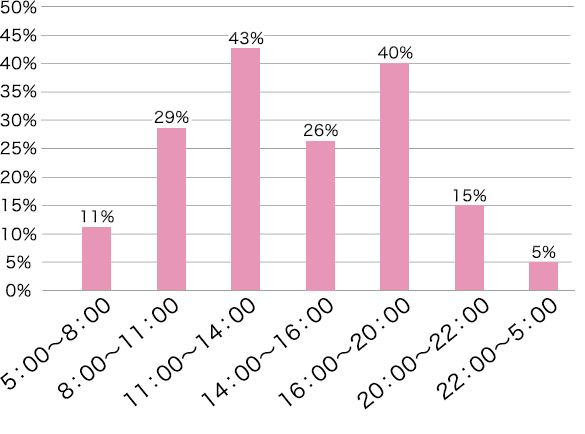 さらに、コンビニの利用時間を調査したところ、主にお昼時の11時~14時の時間帯が最も多く、次いで16時~20時の夕食の時間帯、8時~11時の出勤時の利用が多いことがわかります。