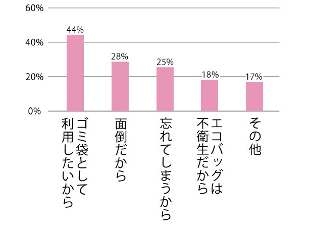 - 分けて入れたい物があったり、いくつかのお店に立ち寄ったりするので、エコバッグが複数必要になり、エコバッグが荷物になってしまいます。[20代 女性]