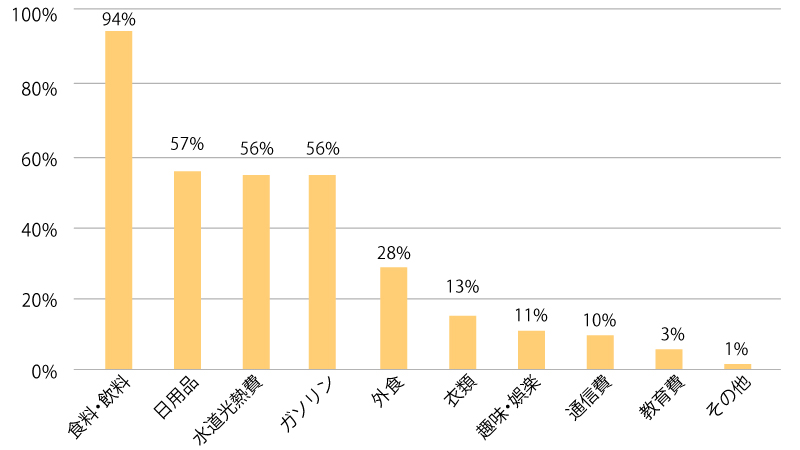 その他にも「日用品」、「水道光熱費」、「ガソリン」が50%を超える結果となっています。
